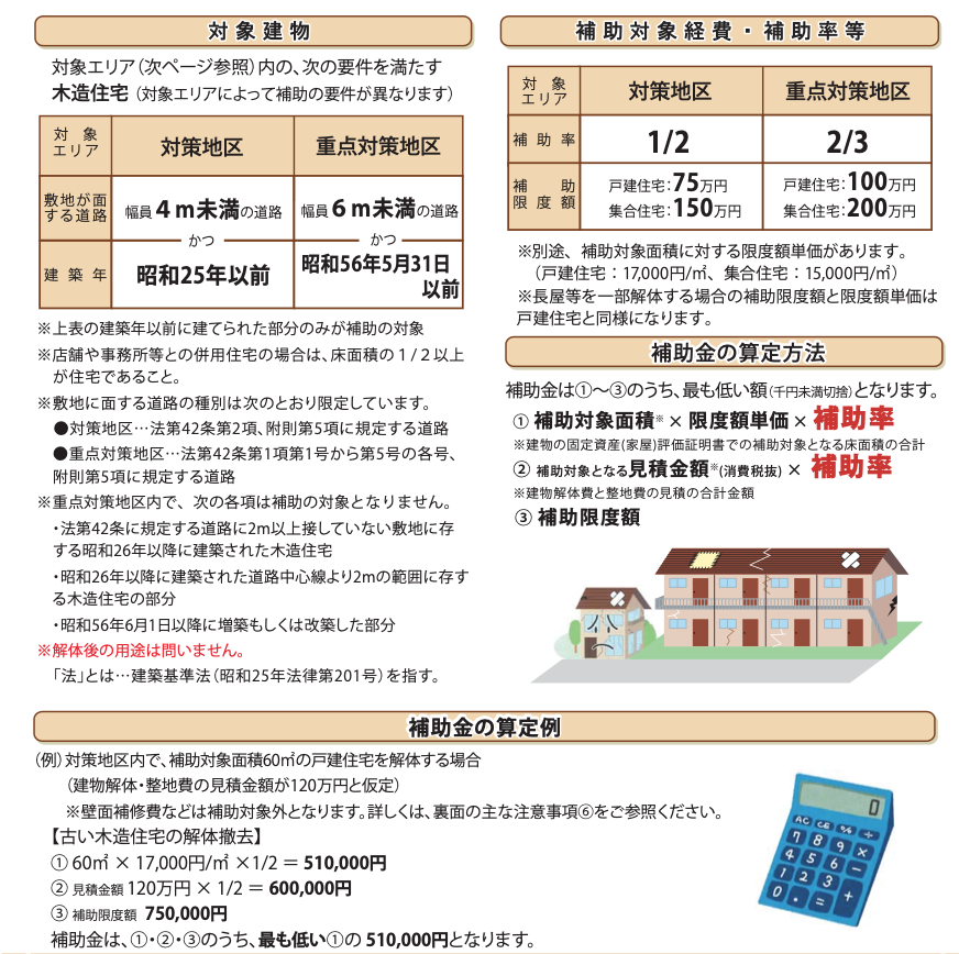 「大阪市民間老朽住宅建替支援事業狭あい道路沿道老朽住宅除却促進制度」